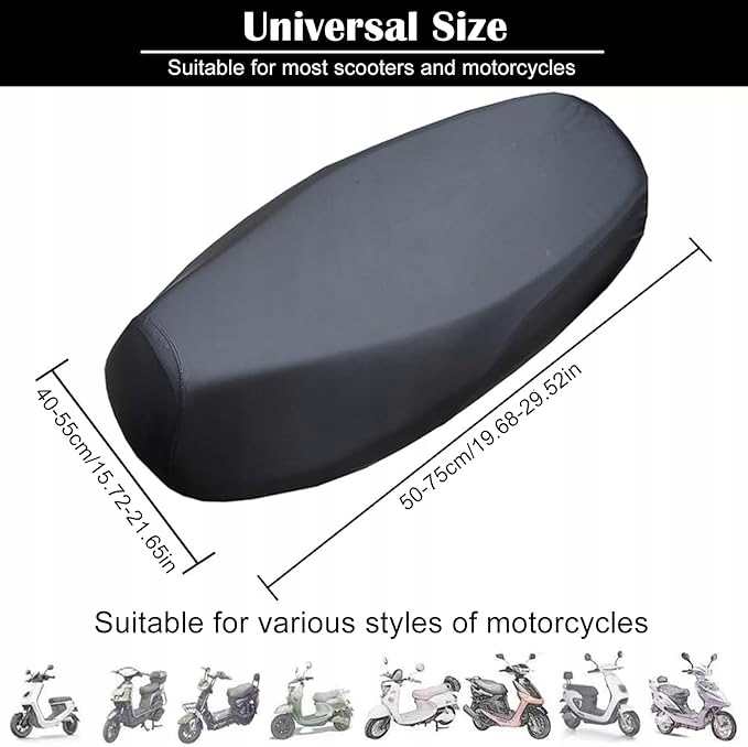 - �【Uniwersalny rozmiar】Pokrowiec na siedzenie skutera, odpowiednia szerokość: 40-55 cm, odpowiednia długość: 50-75 cm. Uniwersalny rozmiar plus elastyczny materiał pasuje do większości motocykli elektrycznych i zapewnia wygodne i przyjemne wrażenia z jazdy.