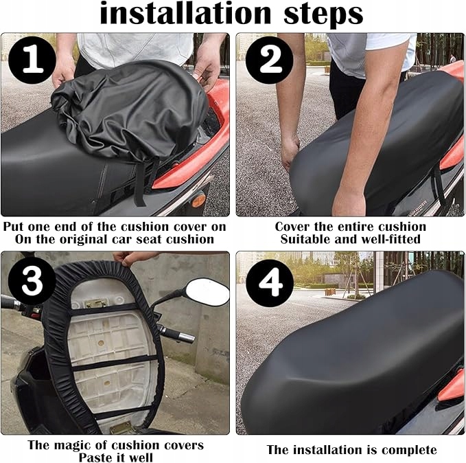 - 🏍【Wodoodporność】Pokrowiec na siedzenie skutera ma doskonałe właściwości wodoodporne. Woda deszczowa nie przenika do wnętrza siedzenia. Nie musisz się już martwić, że siedzenie zamoknie podczas deszczu. Wystarczy zetrzeć wodę z powierzchni ręcznikiem lub suchym ręcznikiem papierowym.