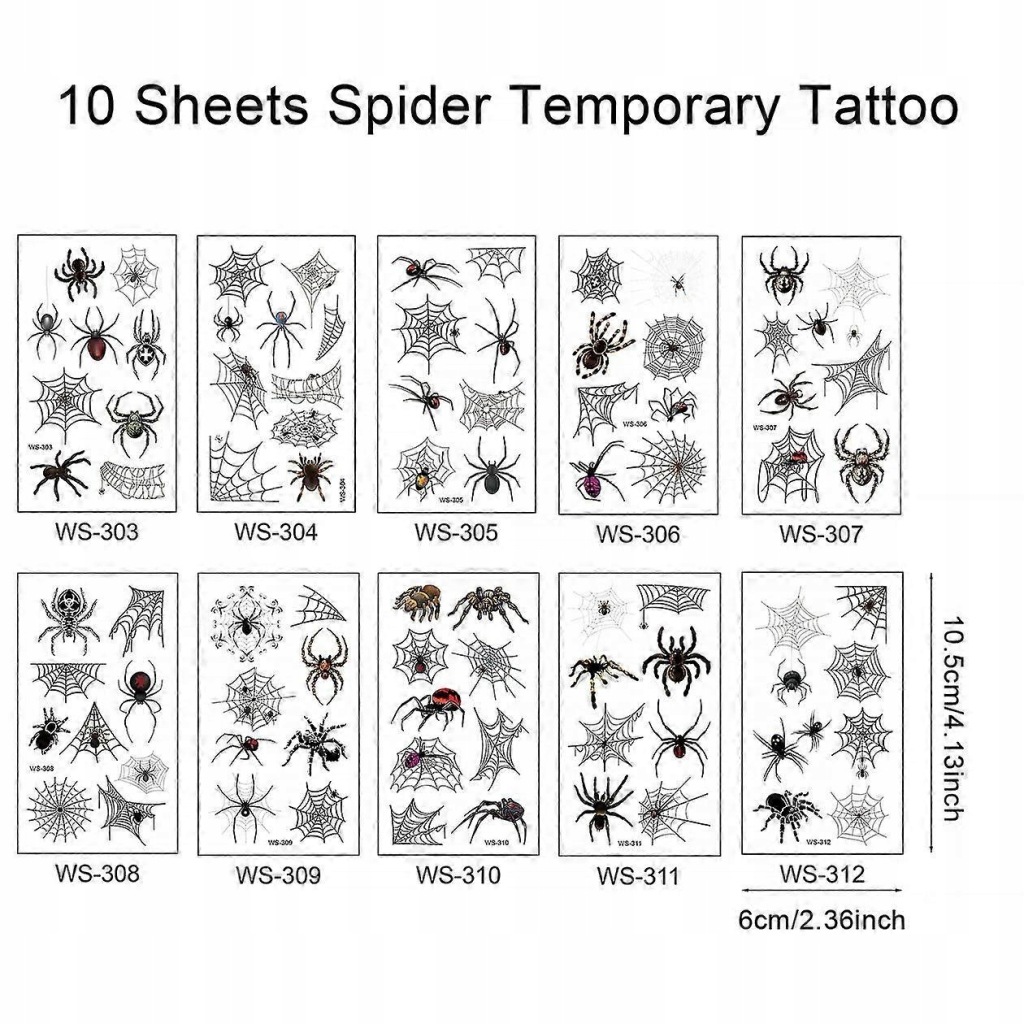 Natychmiastowa transformacja na Halloween: Nasze 10-arkuszowe tatuaże z akcesoriami na Halloween w kształcie pająka to Twoja przepustka do upiornego i niesamowitego wyglądu na Halloween. Łatwo uzyskaj upiorny i urzekający wygląd dzięki tymczasowym tatuażom z motywem pająka. Łatwa aplikacja: Nie ma potrzeby brudzenia twarzy ani skomplikowanego makijażu. Te tatuaże są łatwe w aplikacji i idealne zarówno dla dorosłych, jak i dla dzieci. Po prostu odklej i przyklej, aby uzyskać bezproblemową transformację. Różnorodne wzory: Dzięki 10 arkuszom tatuaży otrzymujesz różnorodne wzory do wyboru. Od upiornych pająków po przerażające stwory, te tatuaże oferują nieskończone możliwości stworzenia idealnego kostiumu na Halloween. Trwałe i bezpieczne: Wykonane z przyjaznych dla skóry materiałów, te tatuaże są bezpieczne dla osób w każdym wieku. Mocno przylegają do skóry, zapewniając, że Twój wygląd na Halloween pozostanie na swoim miejscu przez cały czas trwania upiornych uroczystości. Wszechstronne akcesoria na Halloween: Te tatuaże z pająkami nie są przeznaczone tylko na twarze; można je nakładać na ramiona, nogi lub dowolną część ciała, aby uzyskać kompletny kostium na Halloween. Idealnie nadają się do makijażu czarownicy, przerażających kostiumów i dodania dodatkowej dawki zabawy na Halloween do Twojego wyglądu.