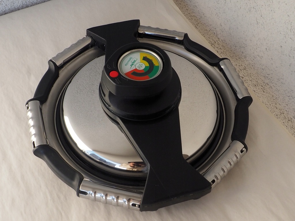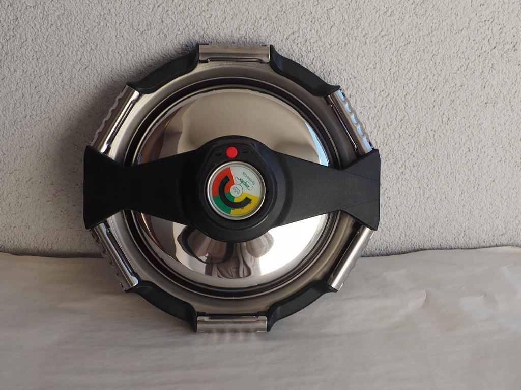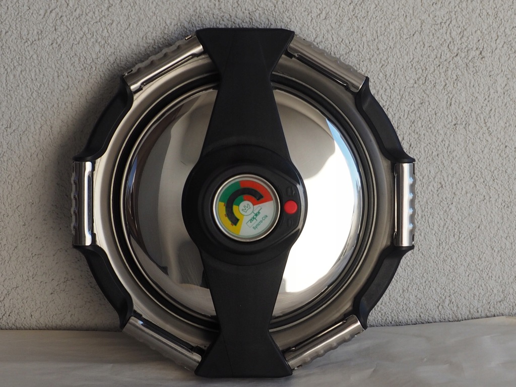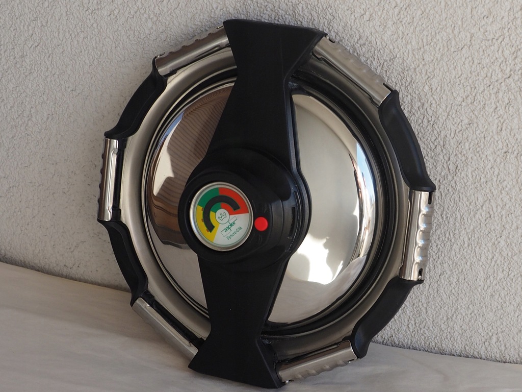 Syncro-Clik.Pokrywa pasuję do garnków i patelni o średnicy 20 cm.Używana, ale stan idealny.Podczas gotowania pod ciśnieniem temperatura osiąga dużo wyższe wartości, niż podczas tradycyjnych metod. Dzięki temu potrawy gotują się szybko, ogrzewane są równomiernie i nie tracą walorów smakowych. Syncro-Clik® redukuje czas gotowania do 80 % i umożliwia redukcję wydatków na energię do 60 %.