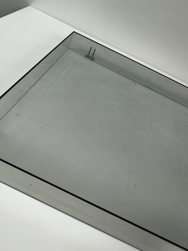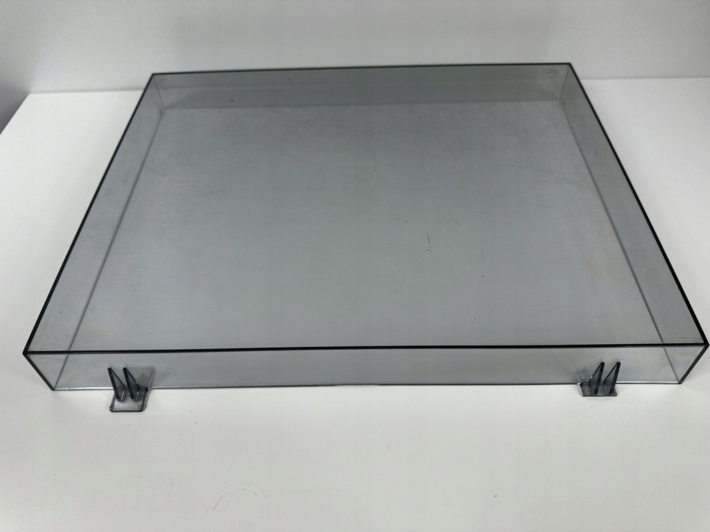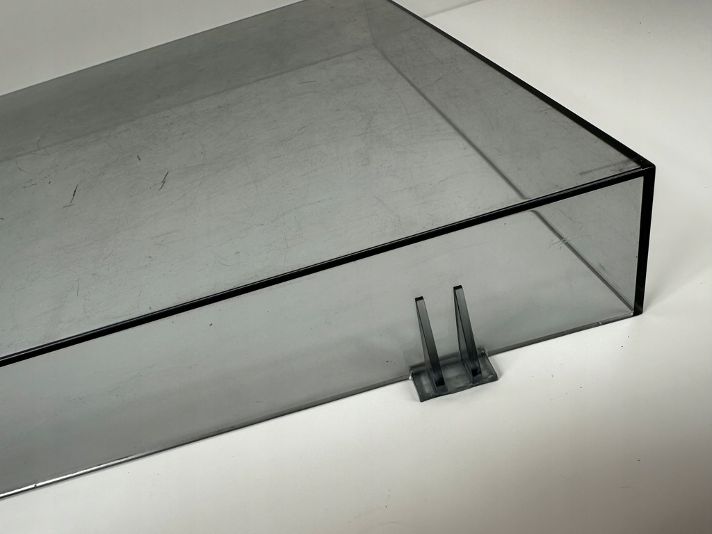 Pokrywa niska dla gramofonu Technics SL-BD3, BD20, BD22, QD3,QD33… Pokrywa cała bez pęknieć, ale z tyłu ma ułamany plastik wchodzący w zawias, pokrywa wymaga polerki.