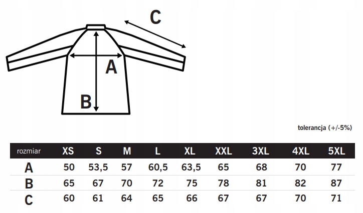 Na ramionach i rękawach wzmocnienia nieprzemakalną tkaniną o dużej odporności na przetarcia.