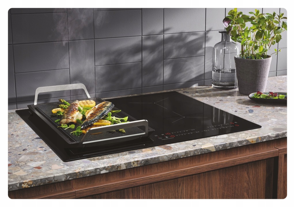 Płyta indukcyjna Bridge 600 umożliwia połączenie dwóch pól grzejnych w jedną dużą powierzchnię do gotowania. Dzięki automatycznej synchronizacji temperatury i ustawień czasu jest to idealne rozwiązanie do użycia płyt grillowych typu plancha i naczyń do pieczenia.