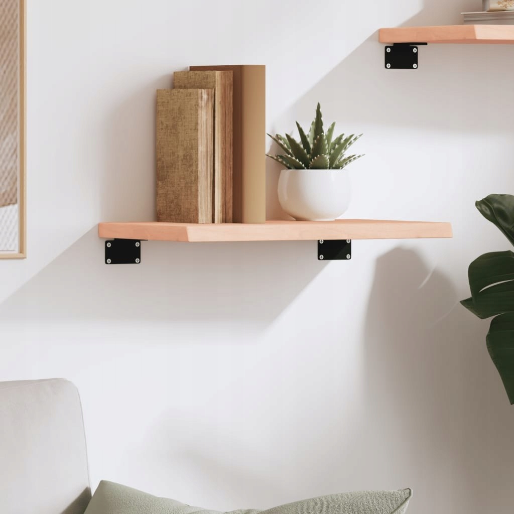Potrzebujesz więcej miejsca do przechowywania, ale nie masz wolnej przestrzeni? Ta półka ścienna w rustykalnym stylu będzie idealnym rozwiązaniem. Wytrzymała konstrukcja: półkę wykonano z litego drewna dębowego, czyli pięknego, naturalnego materiału. Drewno to ma odcień średniego brązu oraz zwartą strukturę słojów, co przyczynia się do jego unikatowego wyglądu.Wszechstronne zastosowanie: oprócz pełnienia funkcji półki, produkt ten może posłużyć również jako blat w połączeniu z różnymi podstawami, w zależności od potrzeb. Można go wykorzystać jako blat w łazience, blat do szafki, blat do stolika itp.Nieobrobiona powierzchnia: z racji tego, że półkę wykonano z surowego drewna dębowego, możesz zachować jej naturalny kolor albo pomalować ją lub polakierować zgodnie z własnymi upodobaniami.Ręczne wykonanie z naturalną krawędzią: półka została wykonana ręcznie z zachowaniem naturalnej krawędzi drewna. Dzięki temu, że sęki, pęknięcia, lekko zakrzywione kształty i różne odcienie są charakterystyczne dla drewna dębowego, każda półka ma swój własny, unikatowy charakter. Wysyłka odbywa się losowo, dzięki czemu otrzymasz zupełnie wyjątkowy i niepowtarzalny produkt.
