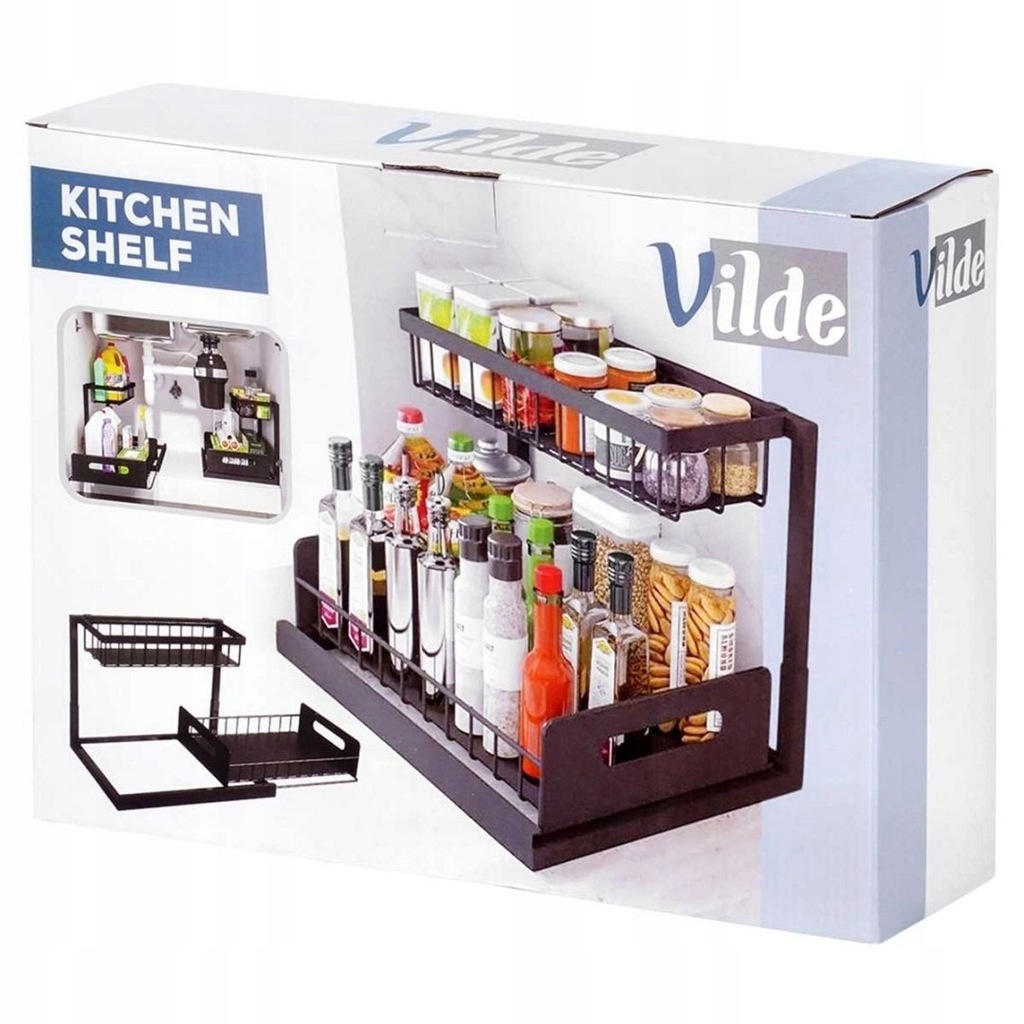Dwupoziomowa półka z wysuwaną dolną szufladą to doskonałe rozwiązanie do przechowywania przypraw i akcesoriów kuchennych. Dzięki niej wszystkie potrzebne produkty będą zawsze pod ręką. Przydatna w każdej kuchni. Oryginalny produkt marki Vilde. Wyprodukowano zgodnie z europejskimi standardami.