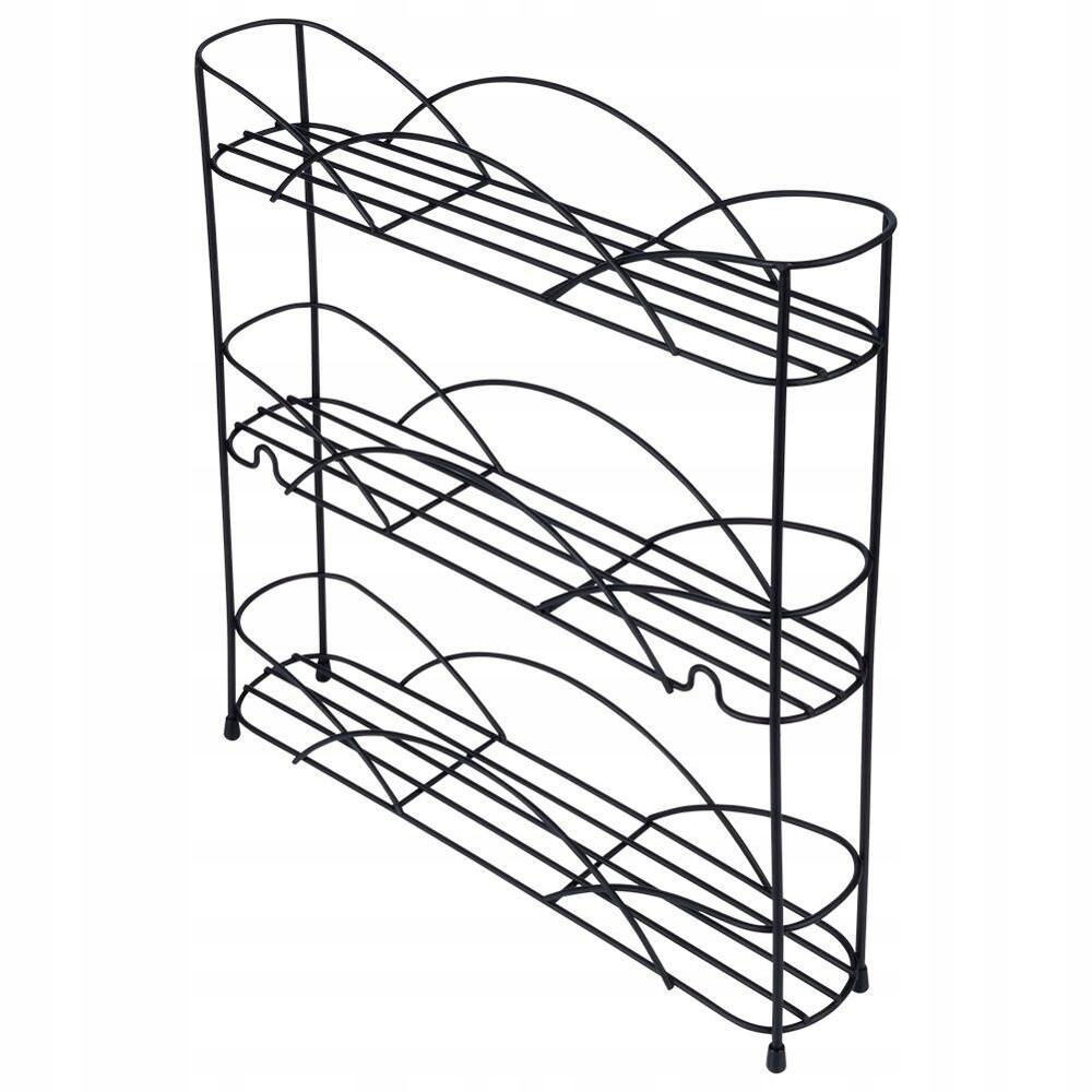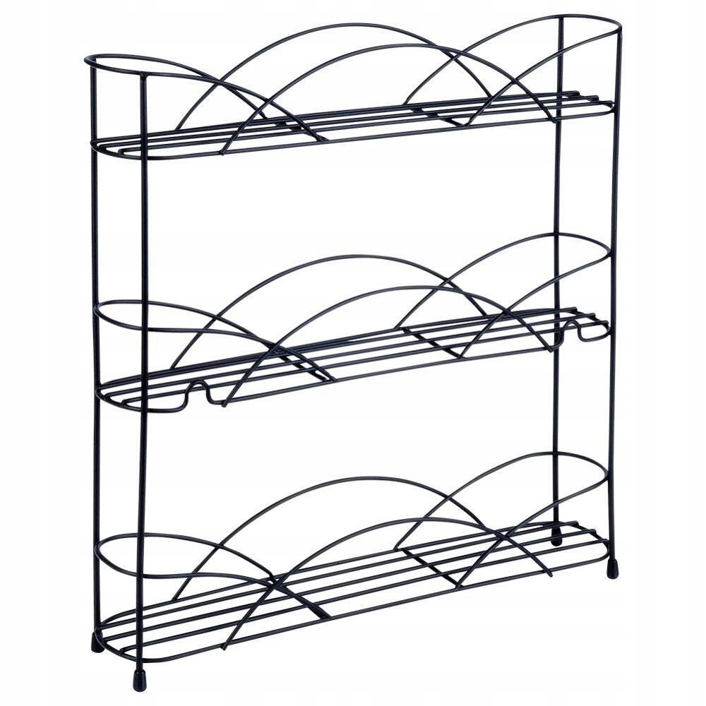 - METALOWA - Uniwersalna półka na przyprawy wykonana w całości z metalu w kolorze czarnym. Półka posiada trzy poziomy na których możemy przechowywać przyprawy lub akcesoria kuchenne. Półka ma wymiary zewnętrzne 33,5 x 6,5 x 33,5 cm. Każda z półek ma wymiar 33 x 6,5 cm.