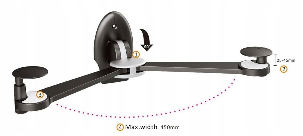 - Szerokość przedmiotu pomiędzy mocowaniami: min 150mm, max 450mm
