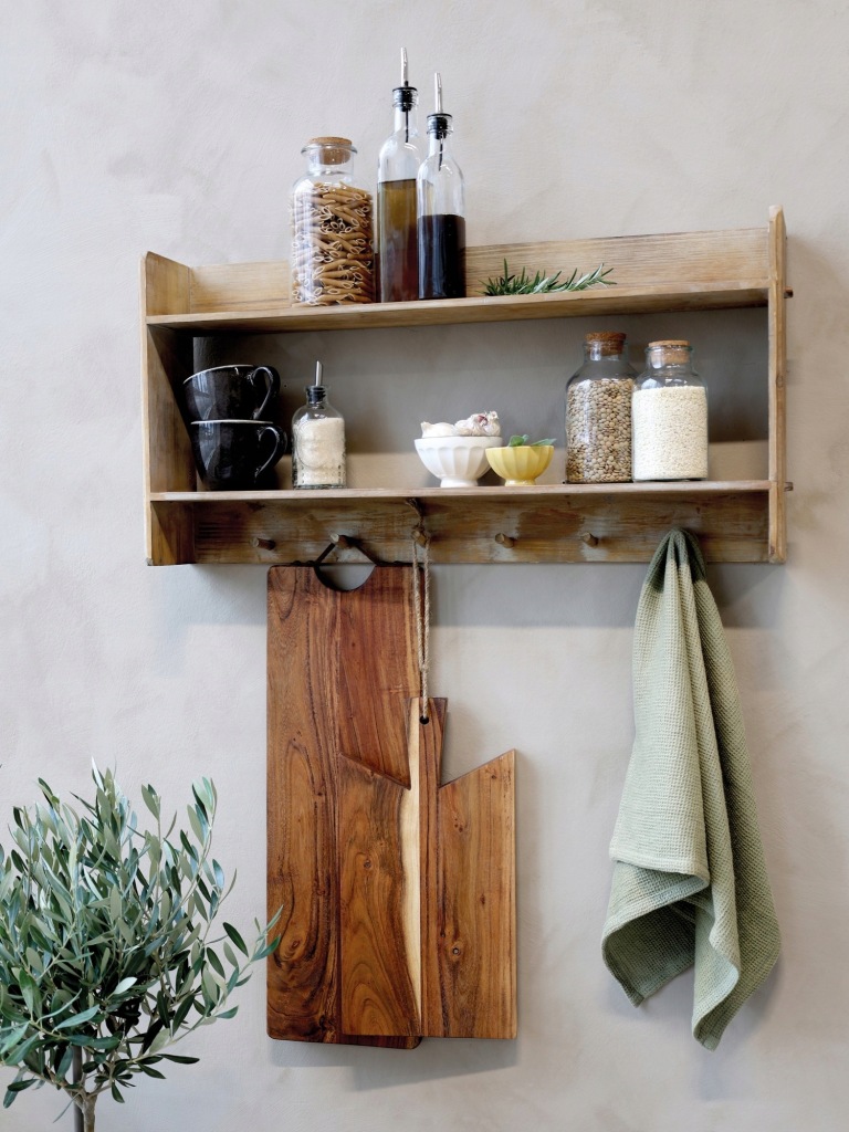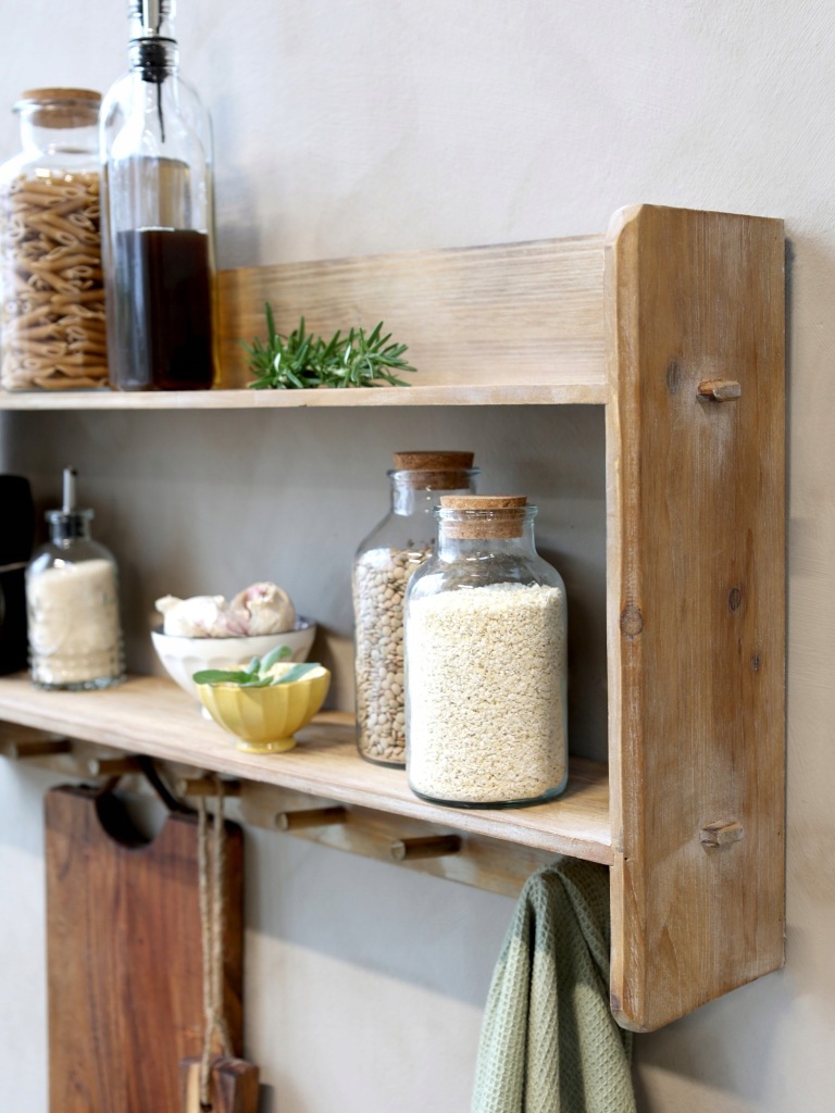 Idealna półka wisząca na kubki i przyprawy do kuchni. Dolne wieszaki wykorzystasz do zawieszenia ściereczek i wiszących akcesorów kuchennych jak łopatki, szpatułki lub garnki oraz patelnie.
