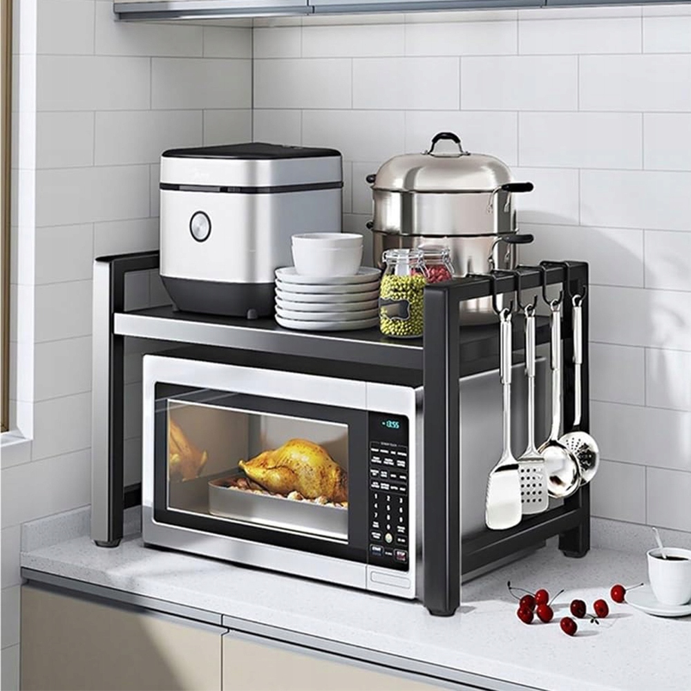 Zmagasz się z ograniczoną przestrzenią w kuchni? Nasza regulowana półka na mikrofalówkę pomoże Ci uporządkować blat i stworzyć dodatkowe miejsce na akcesoria kuchenne. Dzięki solidnej konstrukcji ze stali węglowej i żelaza, półka jest trwała, stabilna i odporna na obciążenia.
