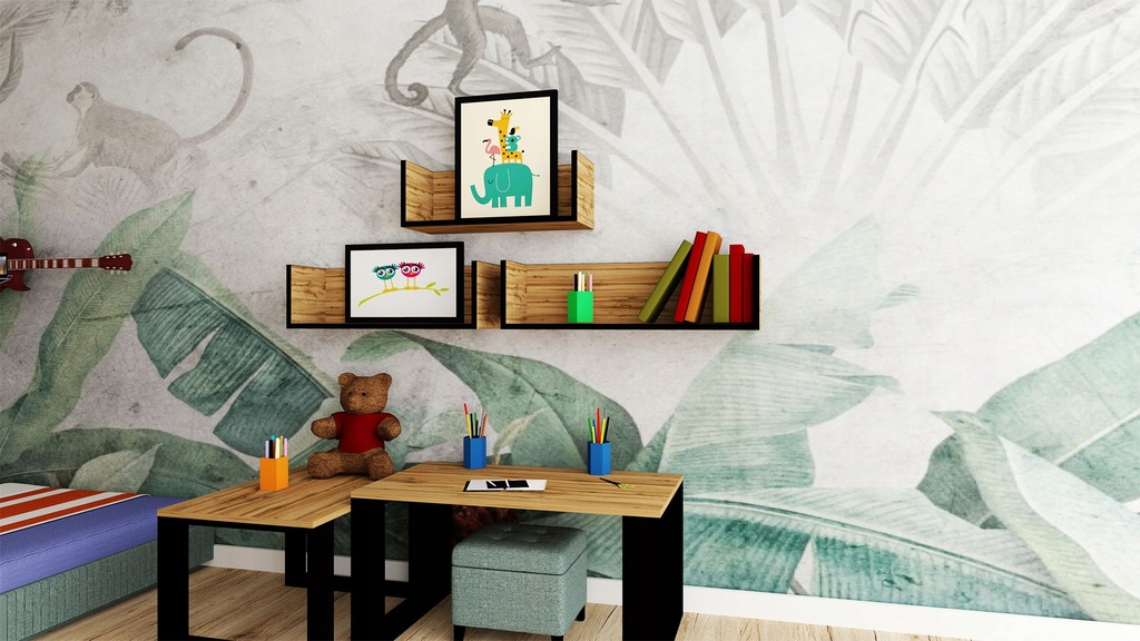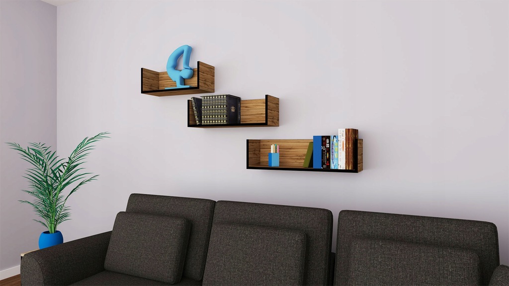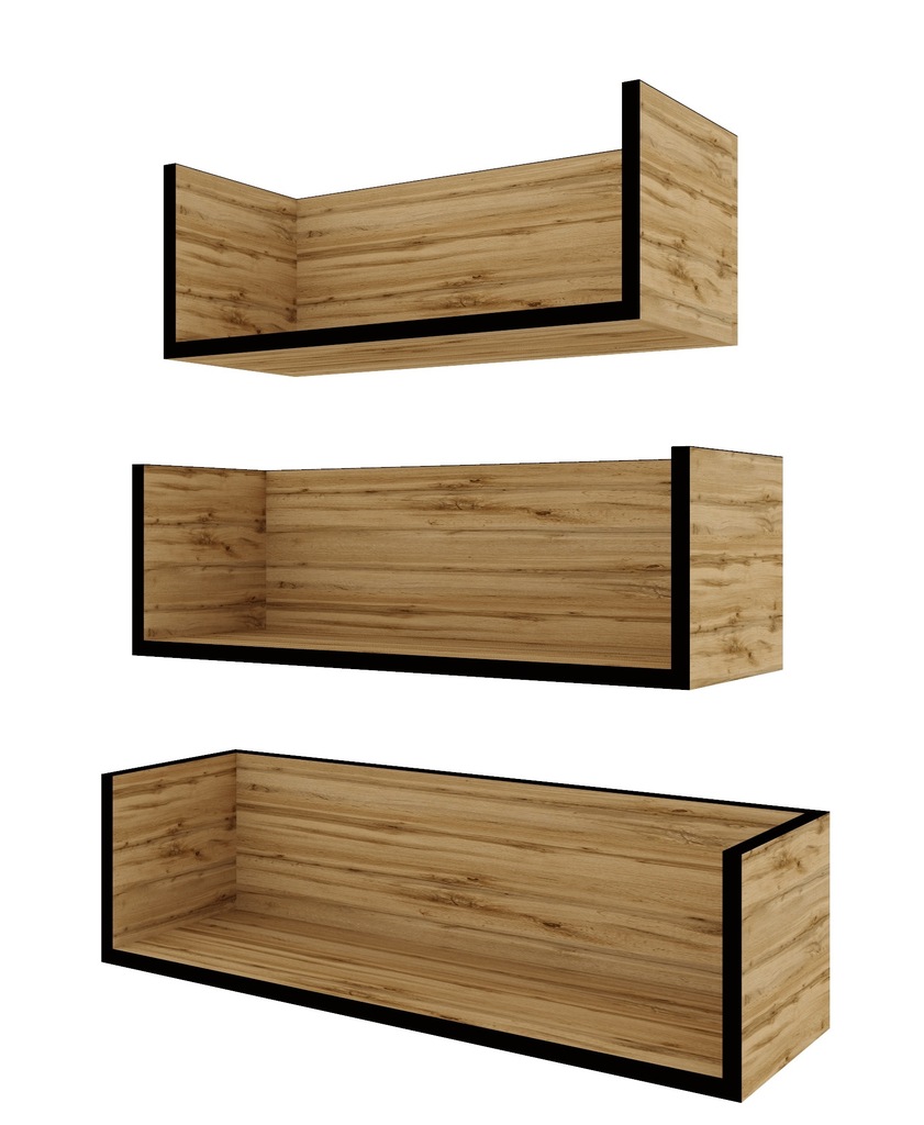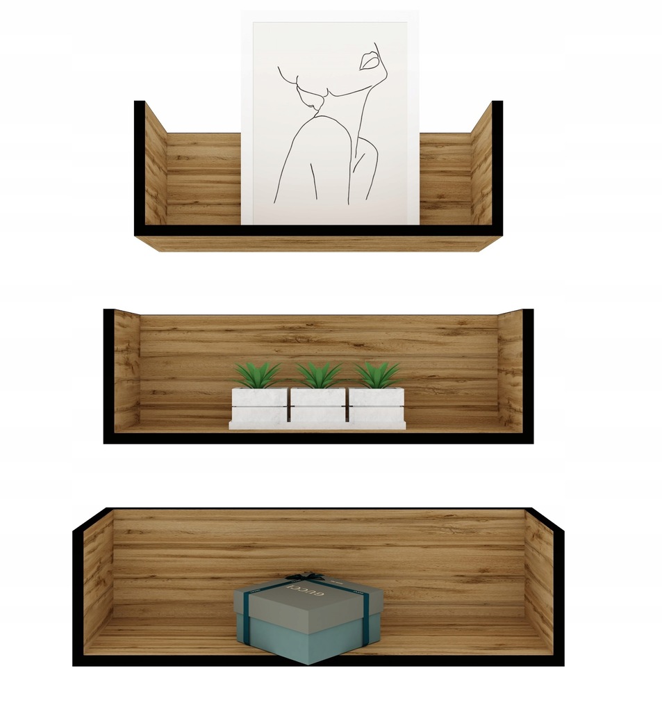 Półki to klasyczny mebel mający wiele zastosowań, w którym łatwo pomieścisz drobiazgi czy książki. Połączenie koloru Dąb Wotan z czarnymi obrzeżami zapewnia uniwersalność oraz świeżość, dzięki której spełnią swoją role w każdym pomieszczeniu. Wysoka jakość wykonania zapewni trwałość na lata.