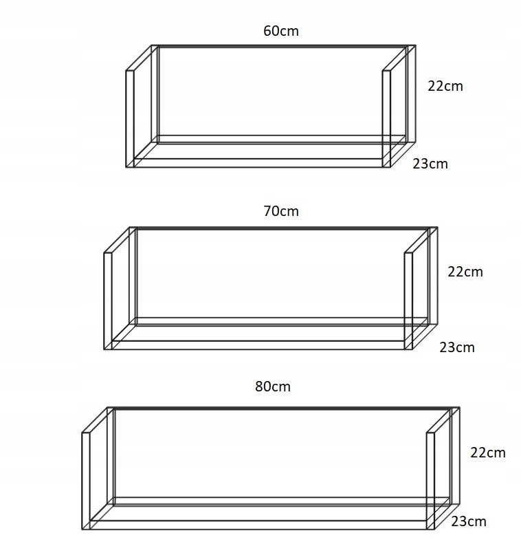 Półki posiadają możliwość regulacji po zawieszeniu na ścianie, przez co są idealnie wypoziomowane i doskonale wyglądają powieszone nad sobą lub obok siebie.
