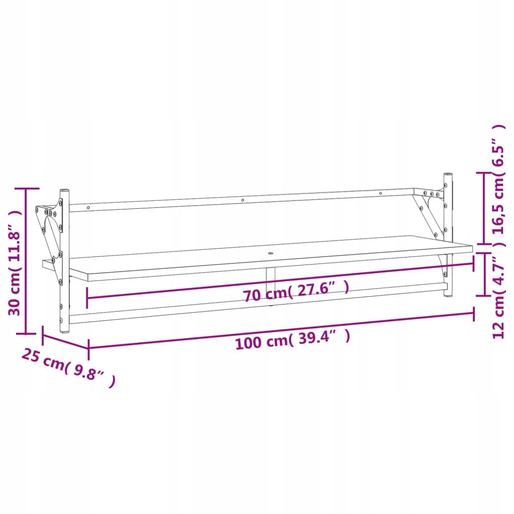 PÓŁKI ŚCIENNE Z DRĄŻKAMI 2 SZT. PRZYDYMIONY DĄB 100X25X30CM