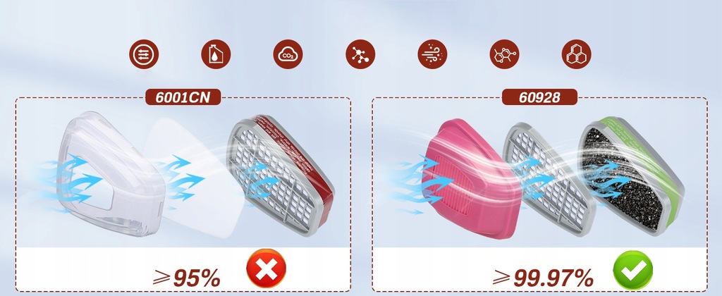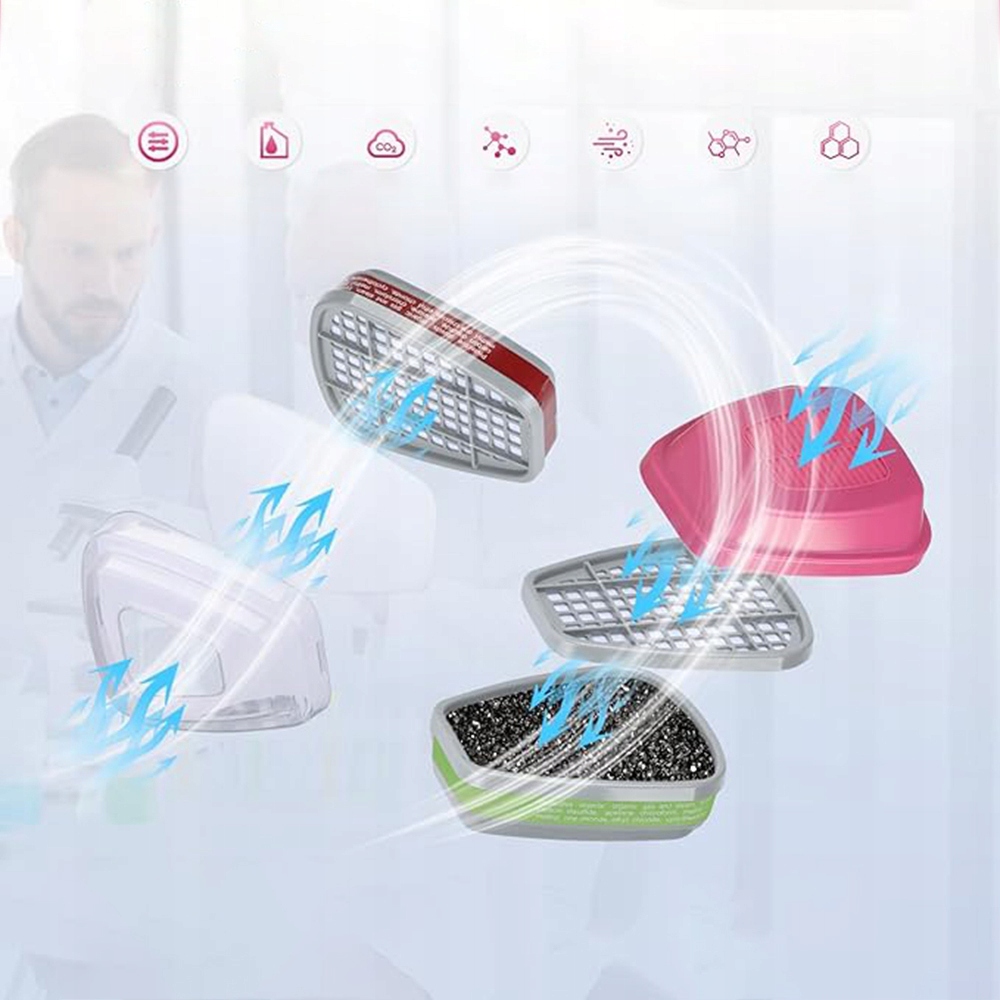 - ✅- W zestawie para filtrów 60926 wykonanych z bawełny i węgla aktywnego, które skutecznie filtrują 99,97% oparów organicznych, chloru, chlorowodoru, dwutlenku siarki, siarkowodoru, amoniaku, metyloaminy, formaldehydu lub kwasu fluorowodorowego, a także nie -tłuste, tłuste cząsteczki pozwalają bezpiecznie oddychać.