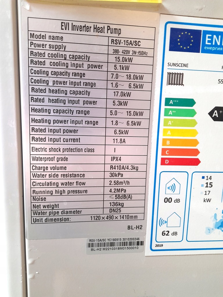 - Znamionowa moc grzewcza [kW]: 15kW