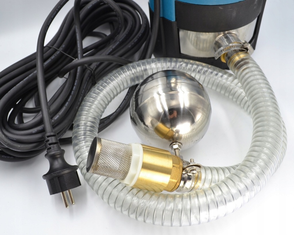 - Wąż ssawny z zaworem zwrotnym o długości 1 m, dzięki czemu pompa nie zasysa wody (oraz zanieczyszczeń) z dna zbiornika