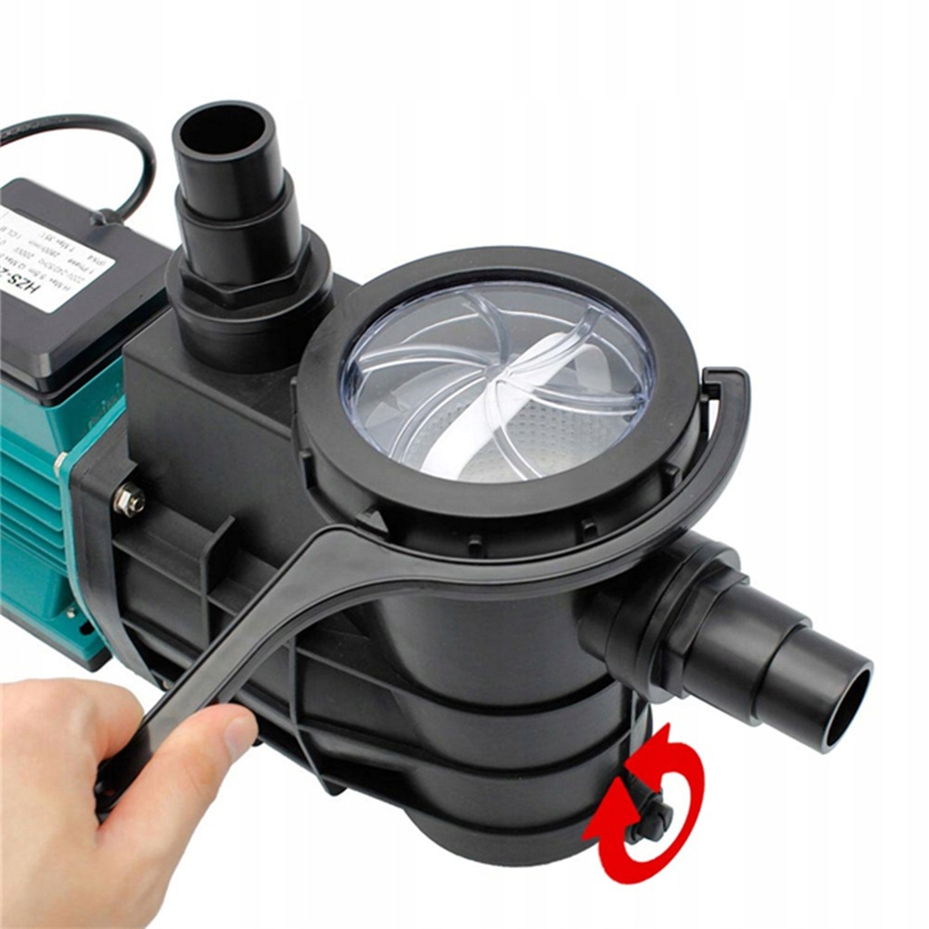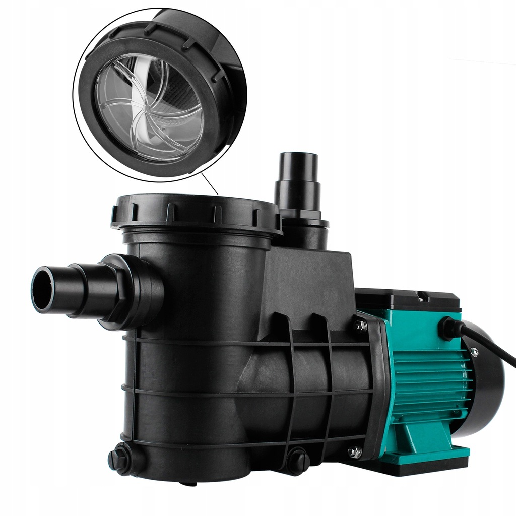 Wał silnika i pompy nie ma kontaktu z wodą basenową. Jest to pompa blokowa ze zintegrowanym łapaczem włókien.