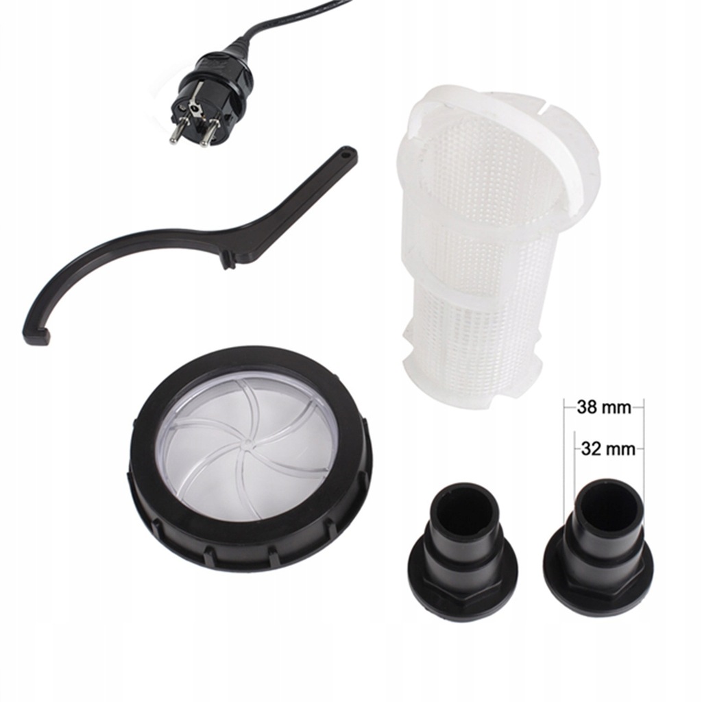 ✔ Maksymalna wielkość cząstek: 2,5 - 3 mm, średnica przyłącza węża / cale: 32 mm/38 mm (1 1/4 cala / 1 1/2 cala), długość kabla: 1,5 m.