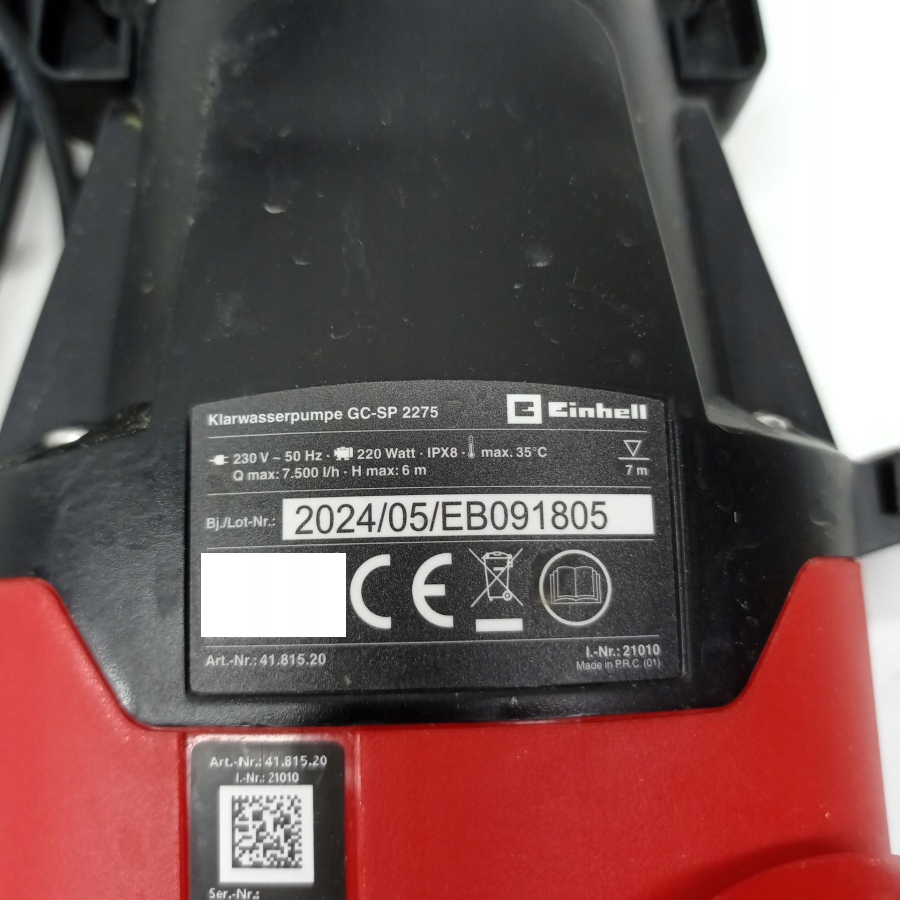 Wysokość tłoczenia - Pompa czystej wody może pompować wodę na wysokość tłoczenia wynoszącą 6 metrów. Podczas opróżniania pompa umożliwia płaskie zasysanie do 5 mm pozostałej wysokości poziomu wody.