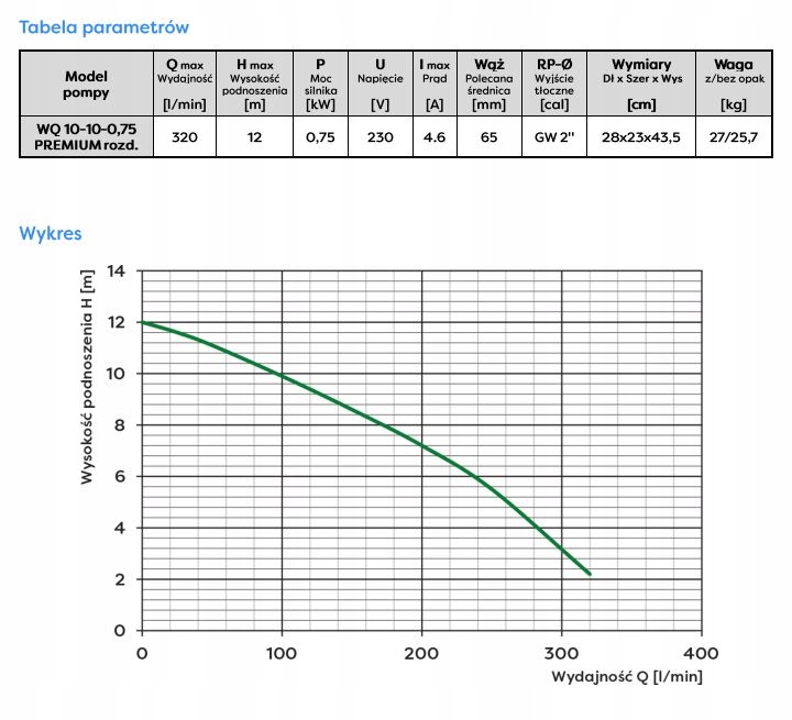 POMPA ZATAPIALNA WQ 10-10-0,75 230V Z ROZDRABNIACZ