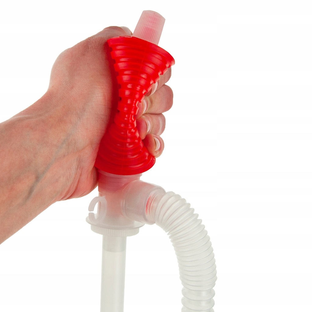 Rewelacyjne urządzenie, dzięki któremu sprawnie i szybko przepompujesz wodę, paliwo i inne ciecze z każdego zbiornika! Pompka jest bardzo łatwa w obsłudze, koniec pompki zanurzamy w płynie, wężyk wylotowy wkładamy do pojemnika i następnie naciskamy górną część pompki.