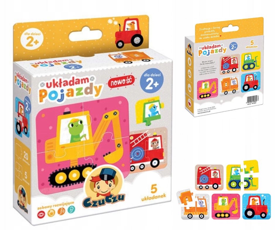 ✔ułożone puzzle ilustrują różnego rodzaju pojazdy.