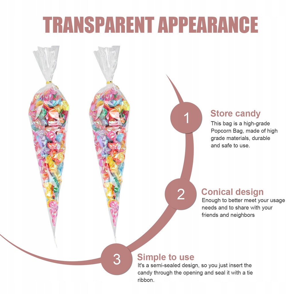 ✅Using novelty cone shape design, transparent appearance makes it more convenient for you to see the inside and outside of the candy, creative and charming, for your family to bring a strong Christmas atmosphere.