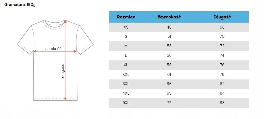 ✔️ Koszulka o gramaturze 190g/m2 to doskonały wybór dla osób poszukujących solidnego i mocnego materiału, który utrzyma kształt nawet po wielu praniach.