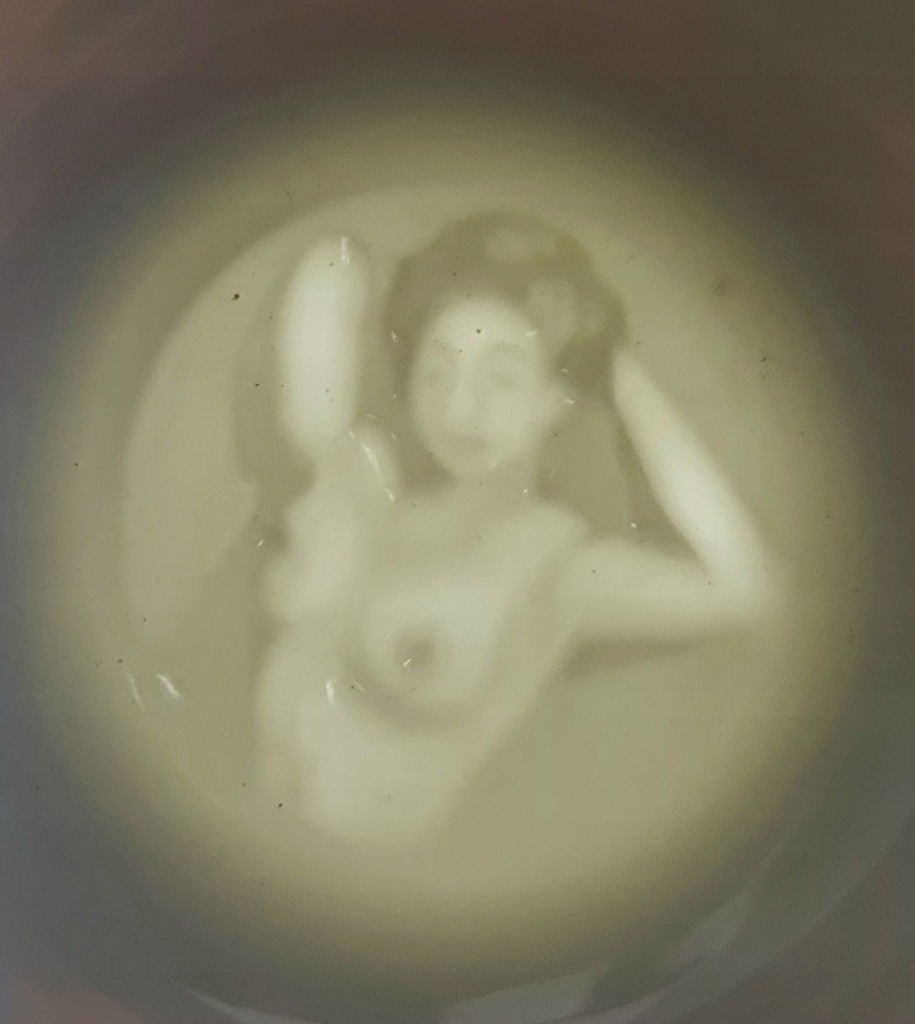 Japońska porcelana Satsuma sygnowana wizerunkiem nagiej Gejszy.