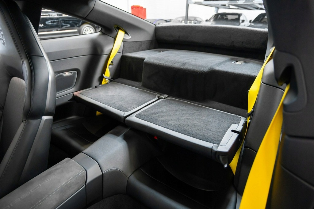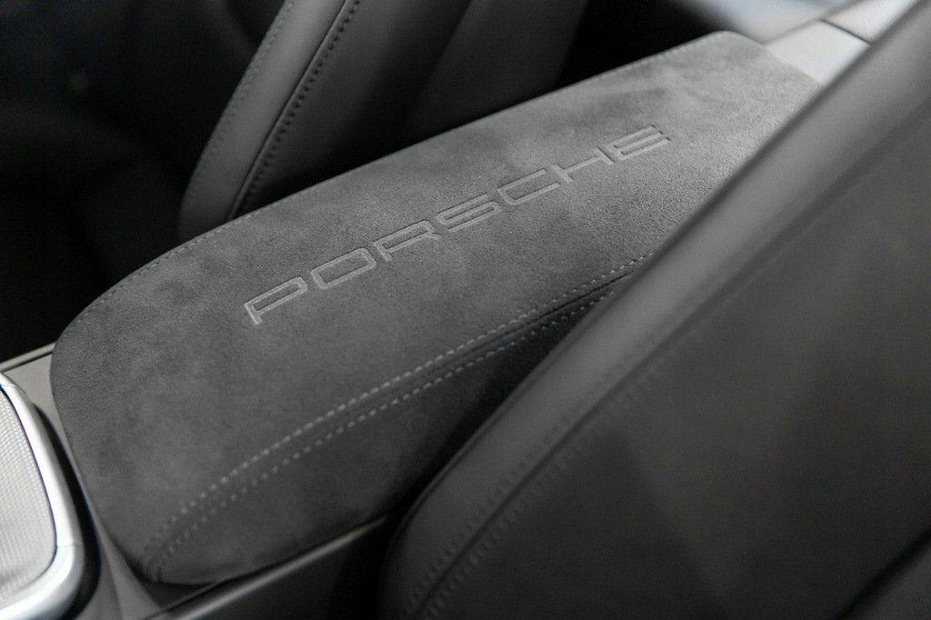 - Pokrywa schowka wykończona materiałem Race-Tex, z herbem Porsche - Exclusive Manufaktur