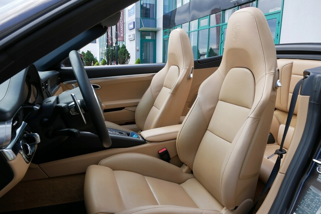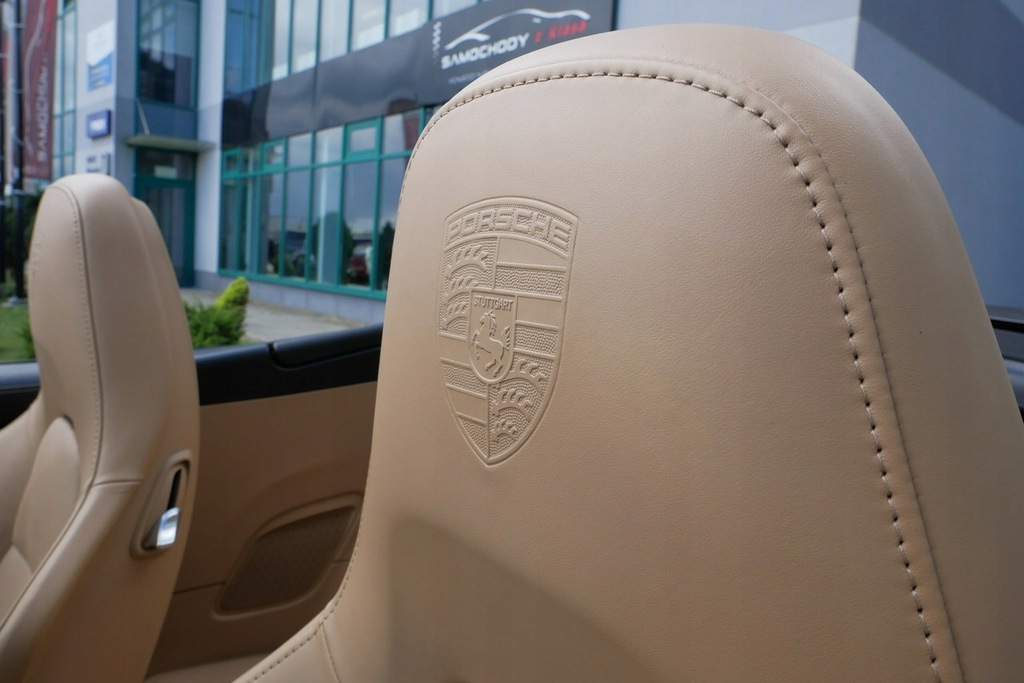 - Herb Porsche wytłoczony na zagłówkach przednich foteli
