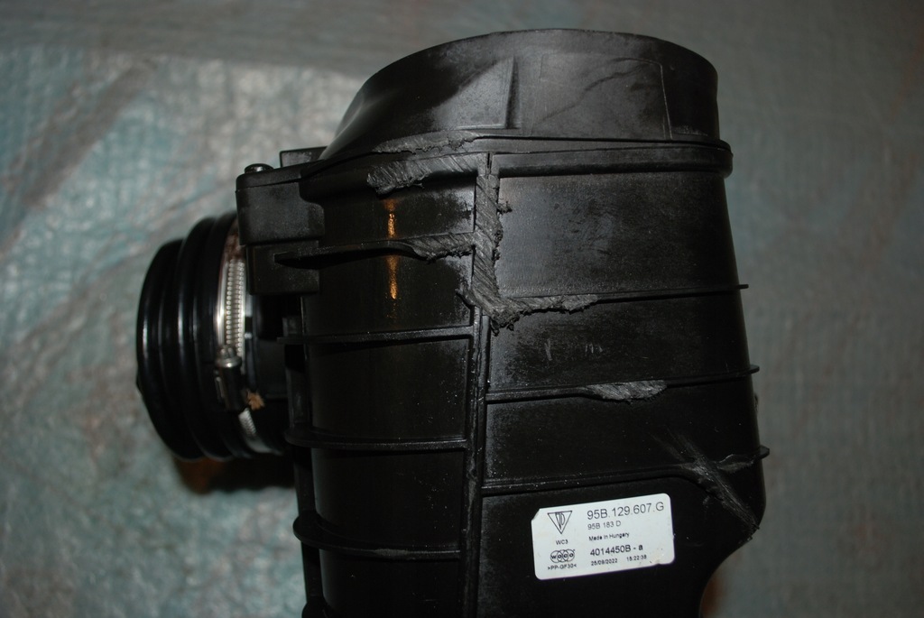 Porsche OE 95B129607G macan obudowa filtra powietrza, stan widoczny na zdjęciach . Posiadamy również obudowy filtra powietrza do innych modeli samochodów. Możliwość odbioru na giełdzie w Poznaniu.