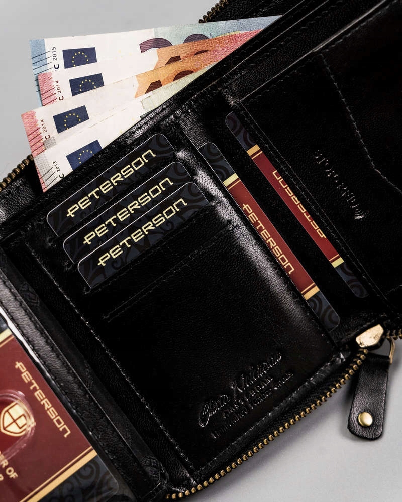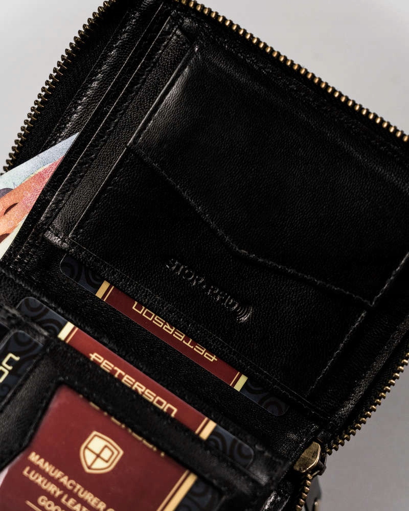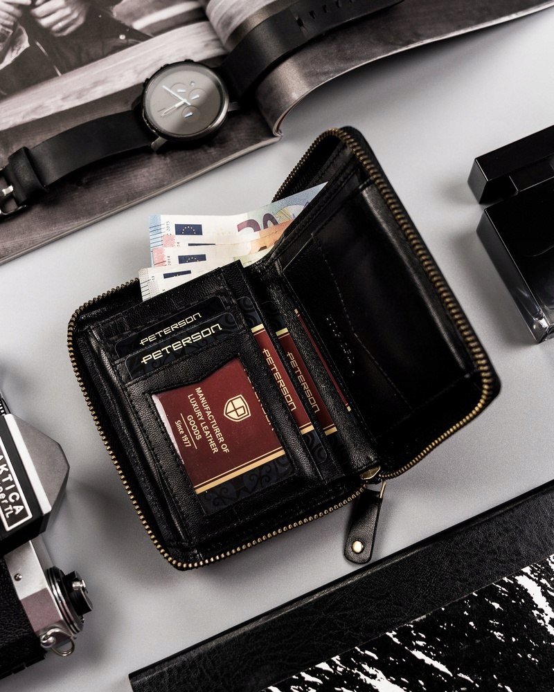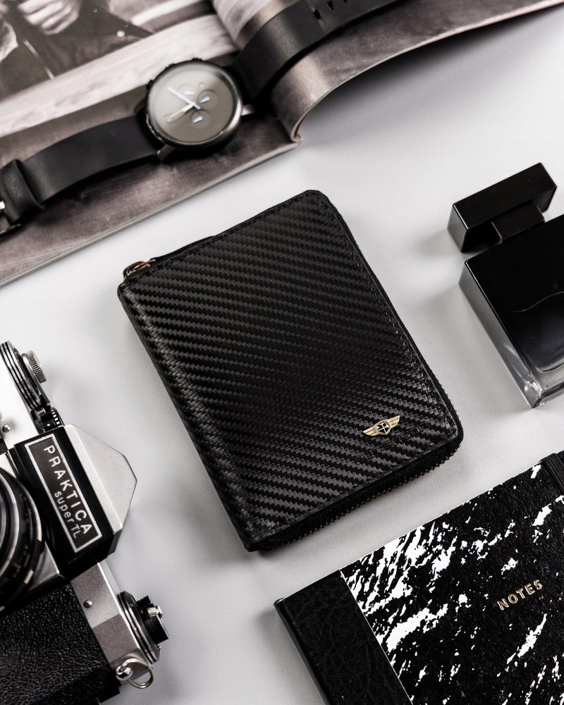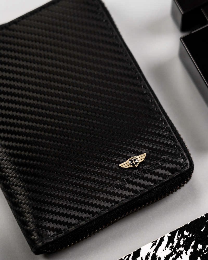 Skórzany portfel na zamek z powłoką carbon — Peterson