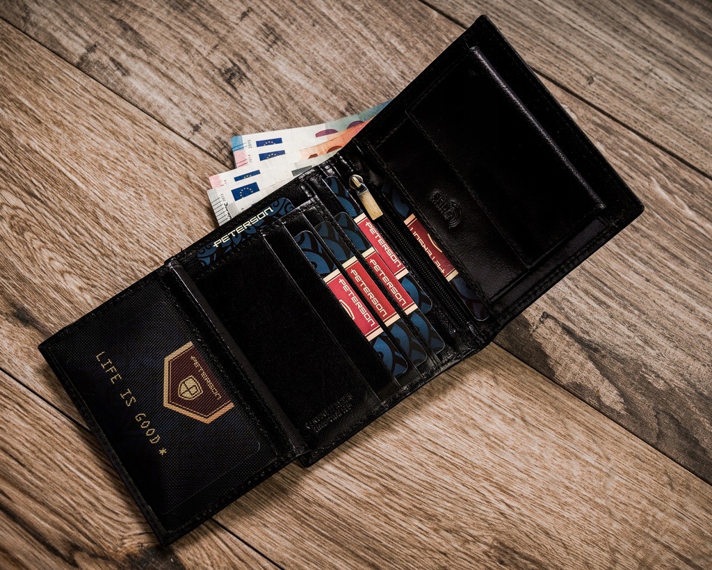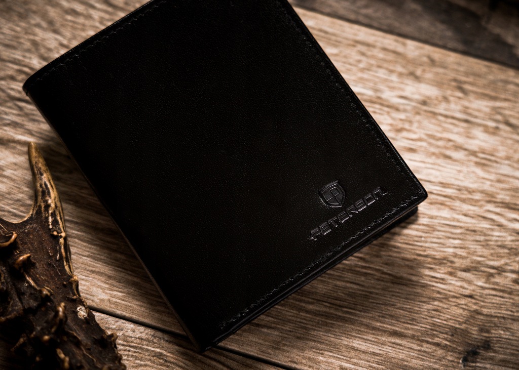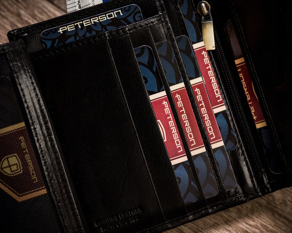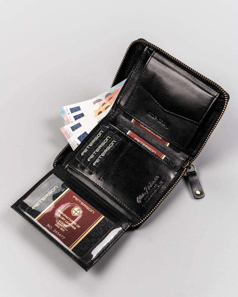 Skórzany portfel na zamek z powłoką carbon — Peterson
