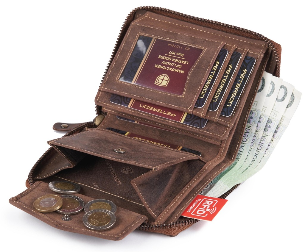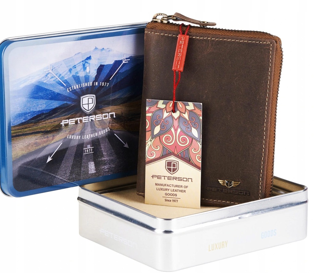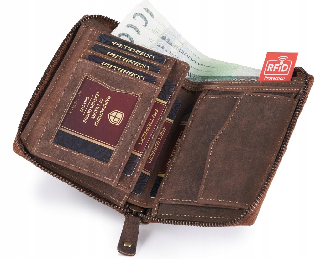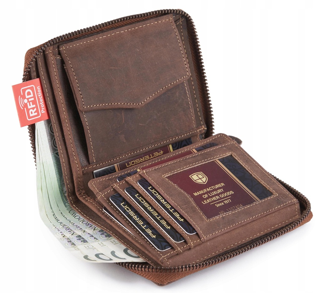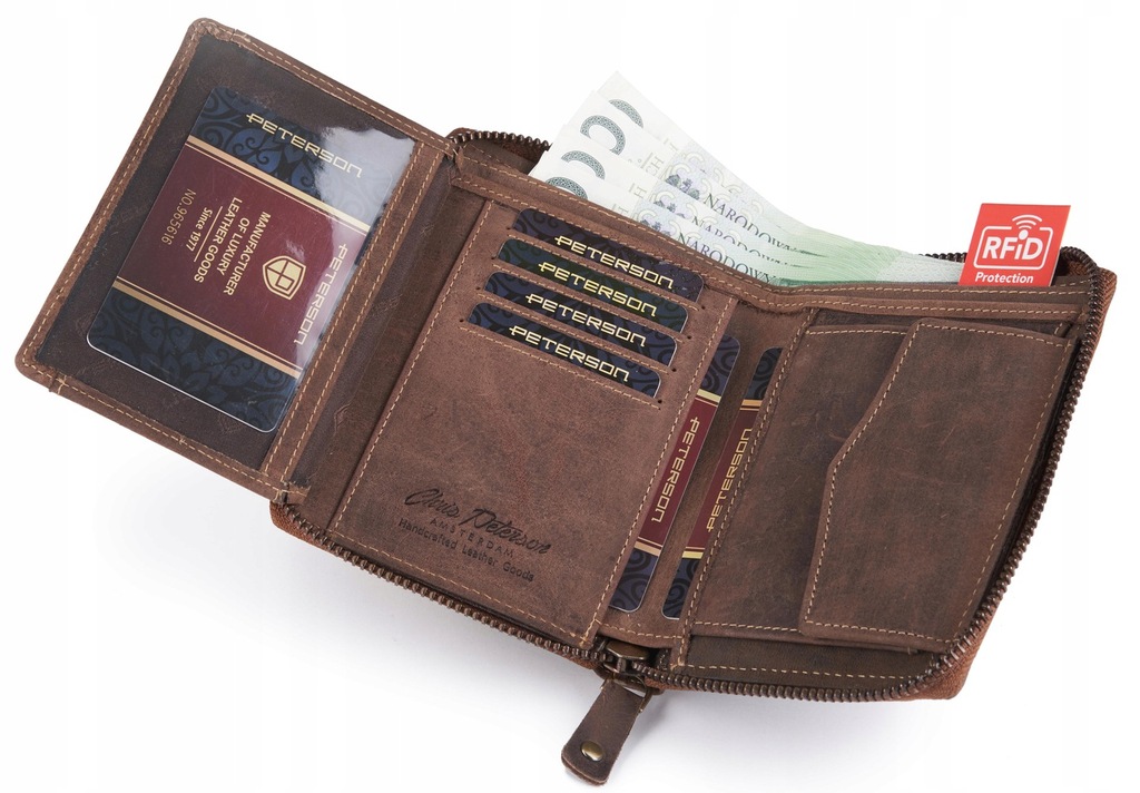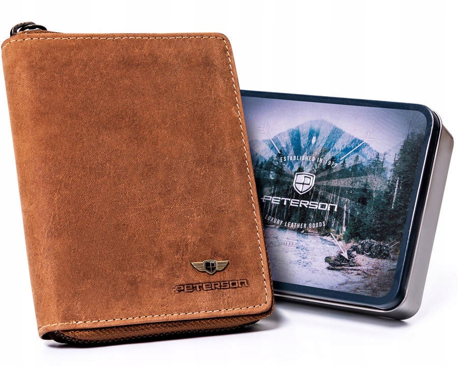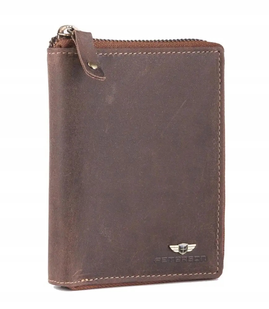 Skórzany portfel męski PETERSON zamykany na zamek.