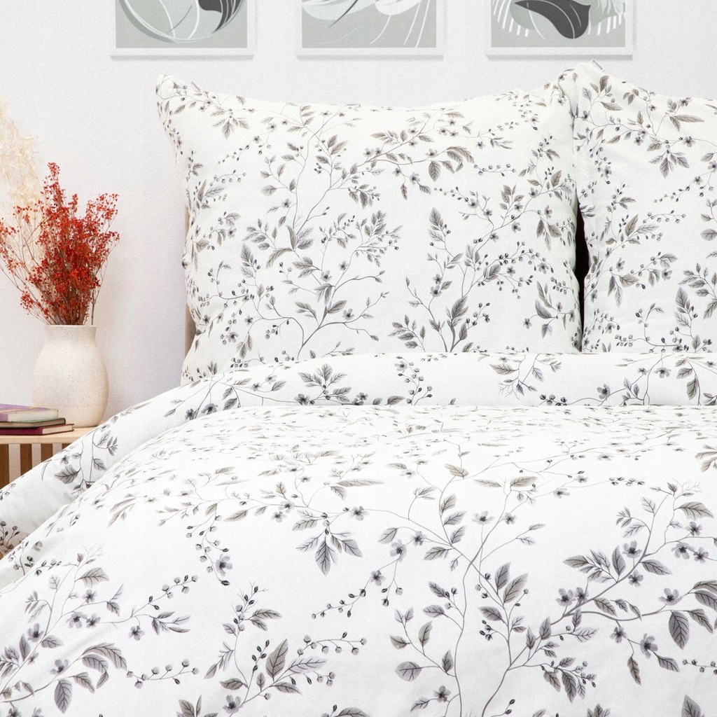 Pościel | B2 Bilberry Branch Essentials | z mikrofibry biała ze wzorem roślinnym |220x200 cm | | 894355