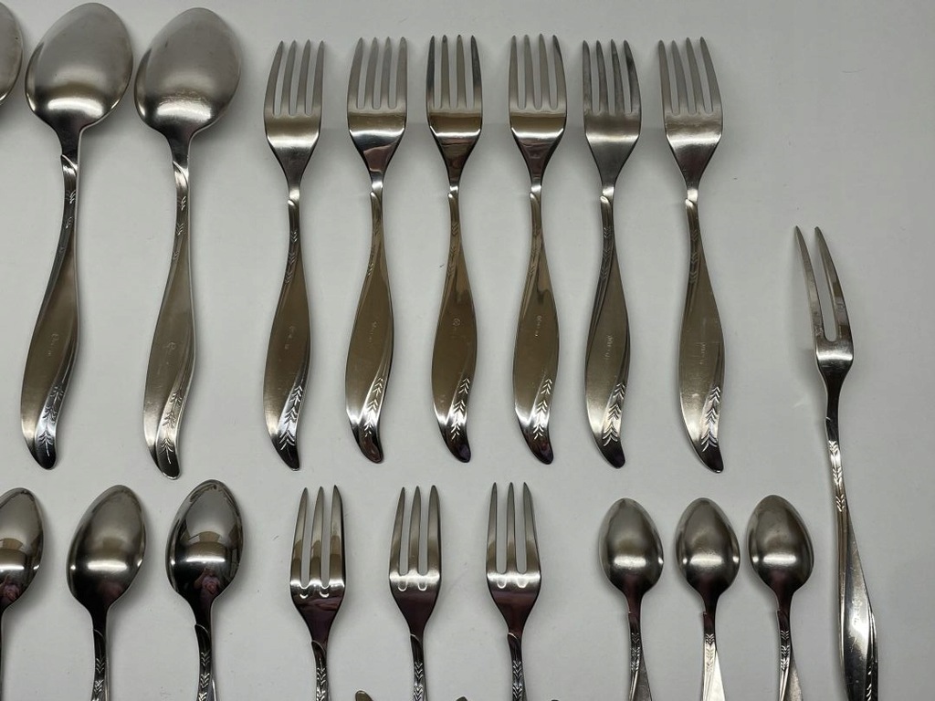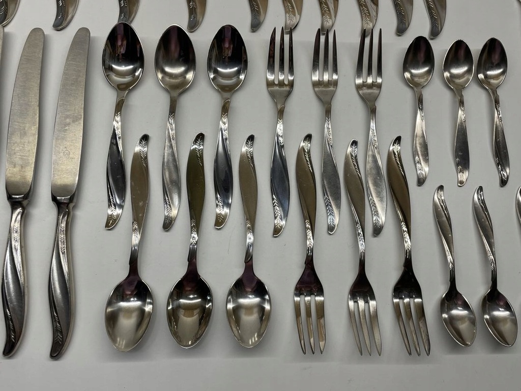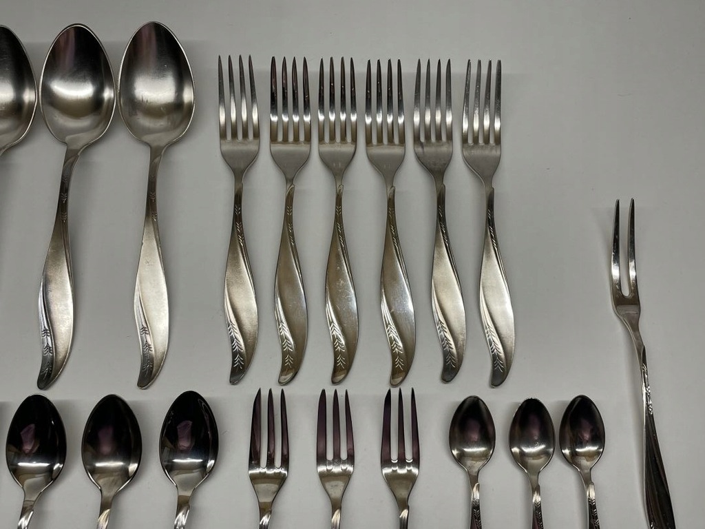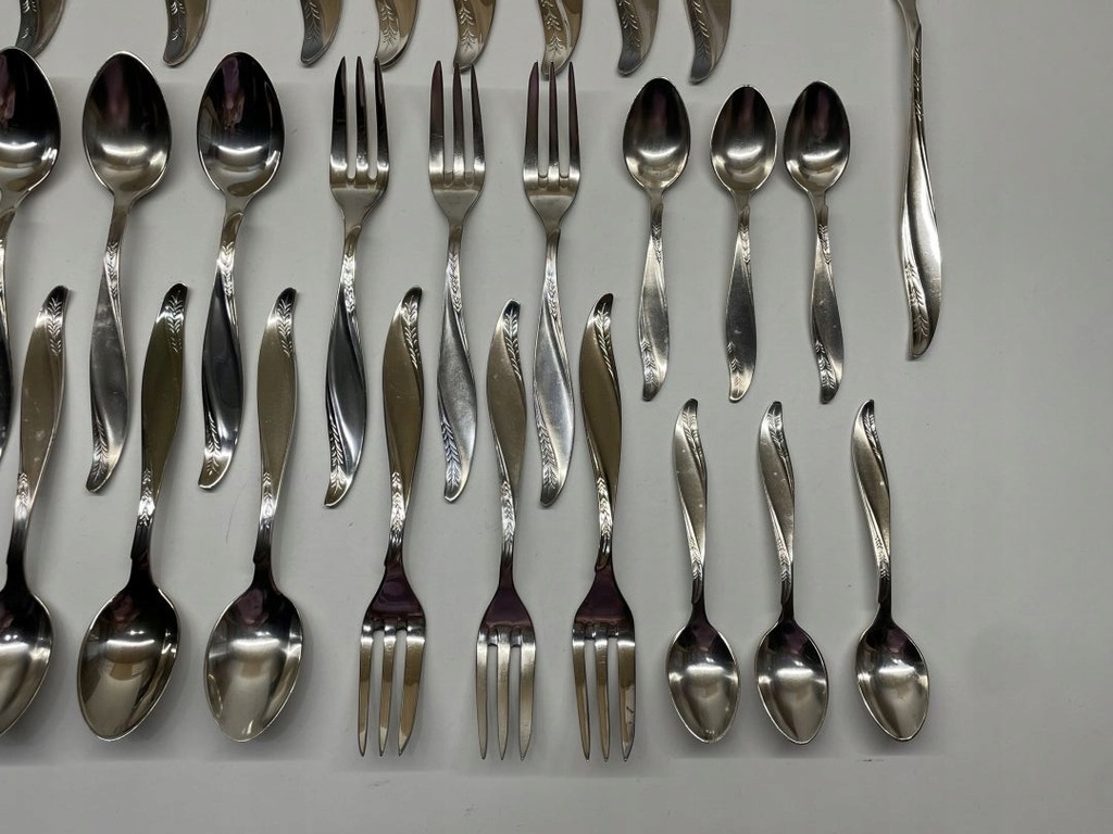 ZESTAW POSREBRZANYCH SZTUĆCÓW OBIADOWYCH DLA 6 OSÓB + 1 WIDELEC DO ZAKĄSEK + 2 SZTUĆCE DO SAŁAT + 6 WIDELCZYKÓW DO CIASTA + 6 ŁYŻECZEK DO KAWY - 39 ELEMENTÓW - HEFRA - WZÓR AMERYKAŃSKI