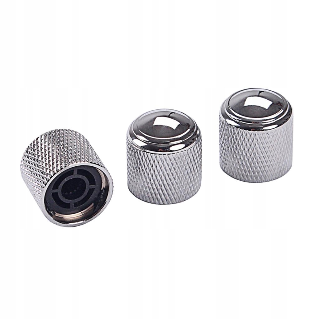 3 Pieces Electric Guitar Bass Tone Volume Metal Control Knobs Cap Silver