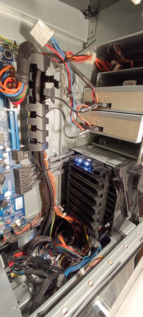 Z tyłu miejsca na sześć dysków twardych widoczne na zdjęciu, dużych lub małych.