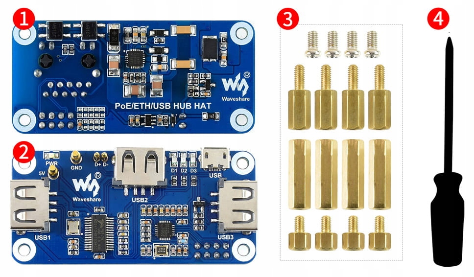 Nakładka Power over Ethernet / 3x USB HUB dla Raspberry Pi Zero.