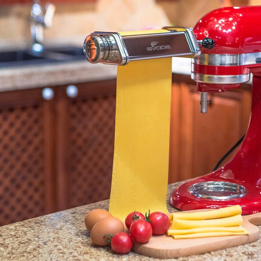 Perfekcyjna przystawka do wałkowania makaronu dla mikserów KitchenAid. Unikalny, precyzyjny design pozwala całkowicie pożegnać się z ręcznymi maszynkami do makaronu i umożliwia bezdotykową obsługę. Nie musisz martwić się o dopasowanie produktu – przystawka do wałkowania makaronu jest odpowiednia do wszystkich mikserów KitchenAid, stanowiąc doskonały zamiennik. (Ta przystawka została zaprojektowana przez Gvode, nie jest powiązana z KitchenAid).