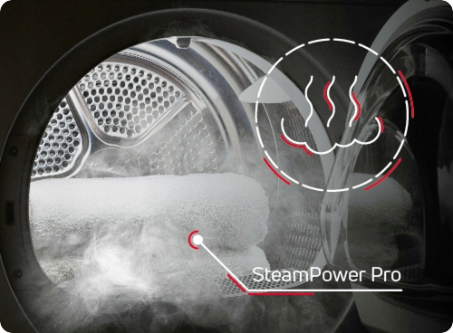 Para generowana na początku cyklu prania gwarantuje perfekcyjnie czyste, w pełni zdezynfekowane ubrania. Wytwarzana w trakcie prania para zabija wirusy i bakterie, dzięki czemu odzież, pościele i inne tkaniny są sterylnie czyste. Para dodana do programu Łatwe prasowanie jest generowana także przed ostatnim wirowaniem i wnikając we włókna tkaniny, rozluźnia je. Tym samym redukuje zagniecenia, a prasowanie staje się łatwiejsze.