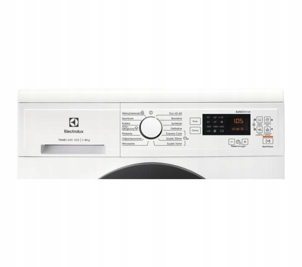 - Zastosowane technologie: automatyka prania Electrolux AutoSense, skrócenie czasu prania Electrolux TimeManager