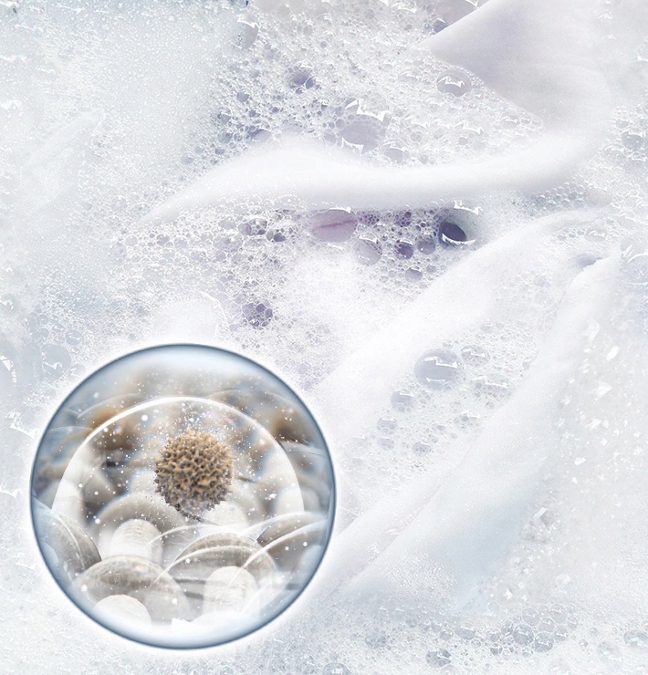 Skuteczne usuwanie uporczywych plam, nawet w niskich temperaturach dzięki technologii EcoBubble™. Woda, powietrze i detergent łączą się jeszcze przed rozpoczęciem cyklu prania tworząc aktywną pianę. Piana wnikając w tkaniny rozpuszcza zanieczyszczenia, chroniąc kolor oraz strukturę materiału.