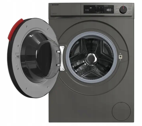 - Zastosowane technologie: automatyka prania Sharp Eco-Logic, bęben Sharp BubbleDrum, redukcja wibracji Sharp Wave Cabinet