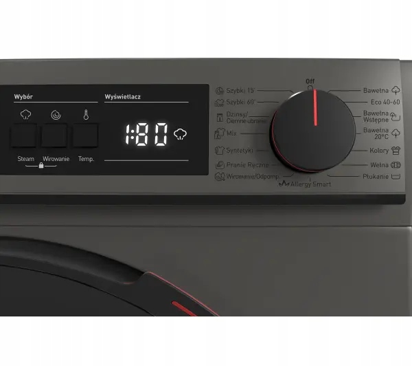 - Sterowanie: elektroniczne: pokrętło, przyciski