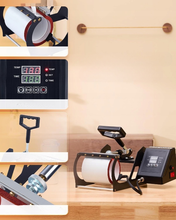 Precyzyjna technologia ogrzewania: ta prasa sublimacyjna Mug jest wyposażona w zaawansowane elementy grzejne, regulowaną siłę nacisku i precyzyjną kontrolę temperatury (0-240°C) i czasu (0-999 sekund), aby zapewnić szybkie i równomierne nagrzewanie za każdym razem.