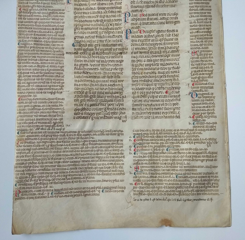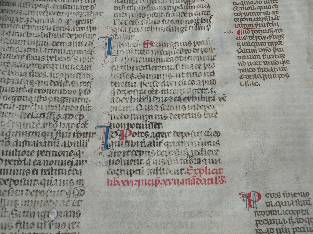 Rękopis z ok. 1250-1350 roku zawierający fragment "Pendactarum iuris civilis" - zbiór przepisów prawa prywatnego rzymskiego. Znajdują się tam teksty Iuliusa Paulusa, prawnika rzymskiego z przełomu II i III wieku. Rękopisy zawierające zapisy prawne są wielokrotnie rzadsze od religijnych.