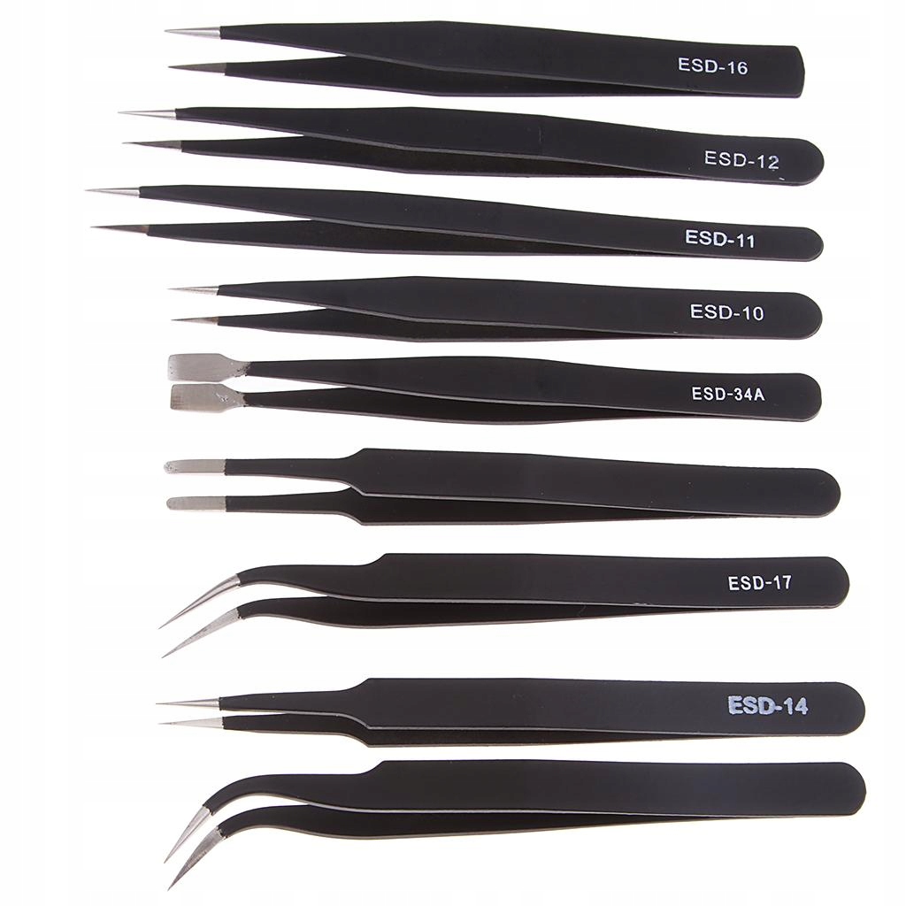 9 szt. Zestaw pęset ze stali nierdzewnej Narzędzie do naprawy kleszczy antystatycznych