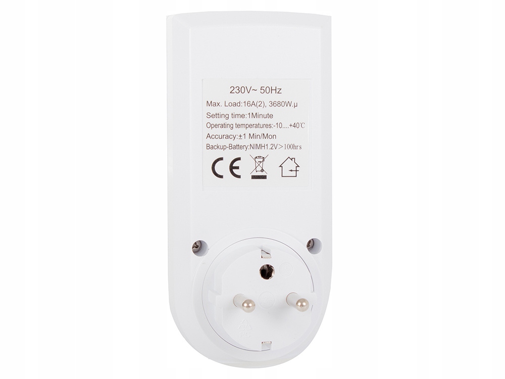 Wyłącznik czasowy przeznaczony jest do sterowania zasilaniem urządzeń domowych. Posiada wbudowaną baterię do obsługi zegara.