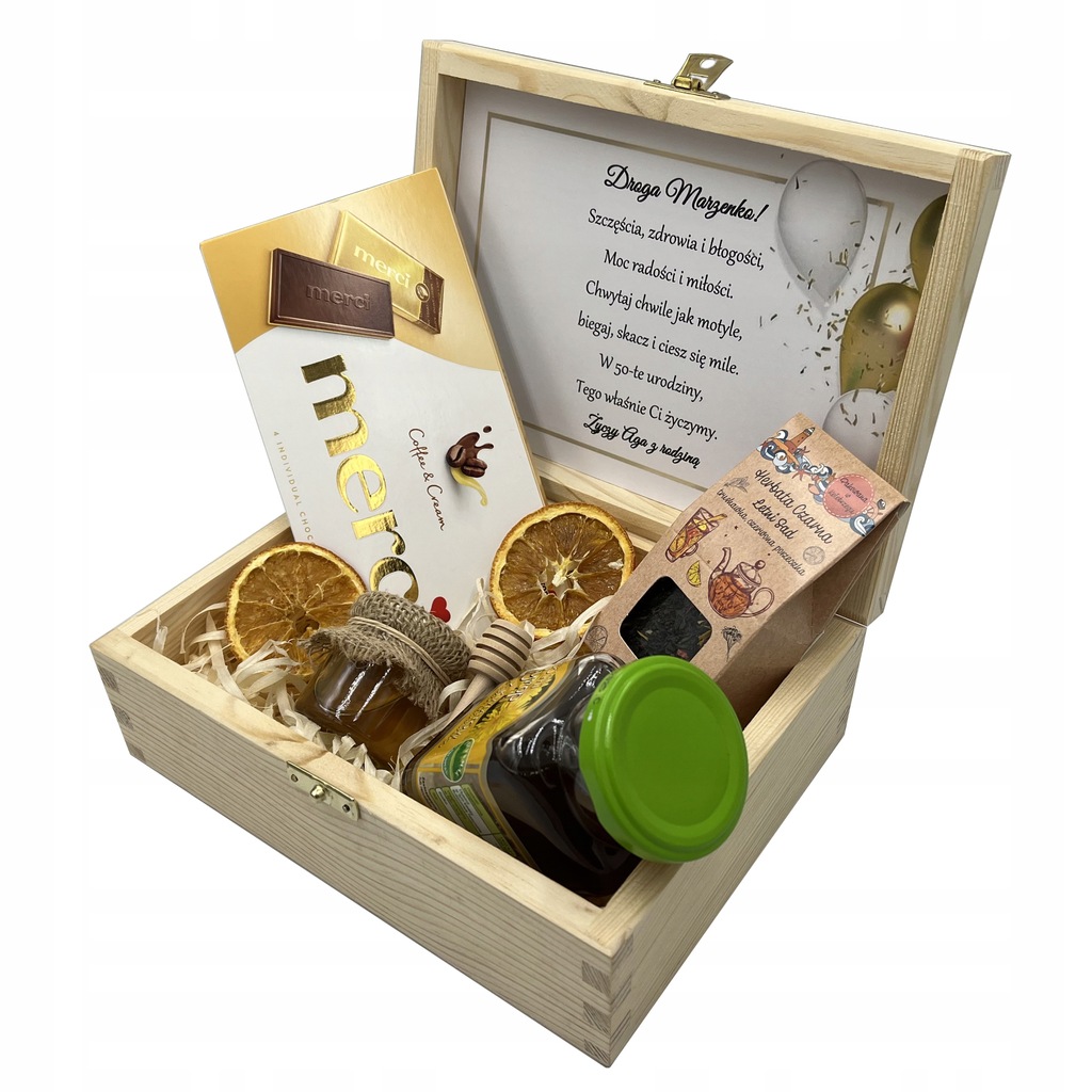 Drewniane pudełeczko w formie boxu prezentowego z okazji urodzin zarówno dla niej jak i dla niego. Wewnątrz znajduje się etykieta z życzeniami widocznymi na zdjęciu. Przedstawiony GiftBox to wyjątkowy i oryginalny prezent, który na pewno zachwyci każdego.